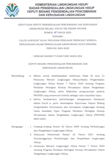 PermenLH BPLH No. 7 Tahun 2025 Tentang PROPER
